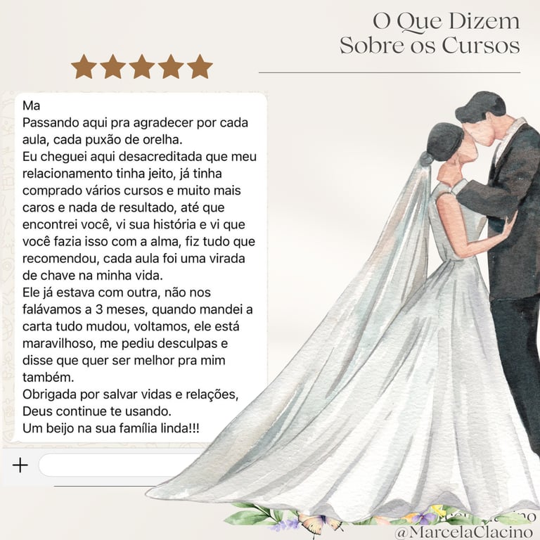 Não foi por acaso que eu me tornei terapeuta. Eu sei exatamente como dói uma separação — porque eu também já vivi essa dor. E foi nesse momento que fiz um compromisso com Deus: usar tudo o que aprendi para ajudar o maior número possível de mulheres a restaurarem seus relacionamentos e escreverem uma nova história de amor, com dignidade, clareza e propósito.