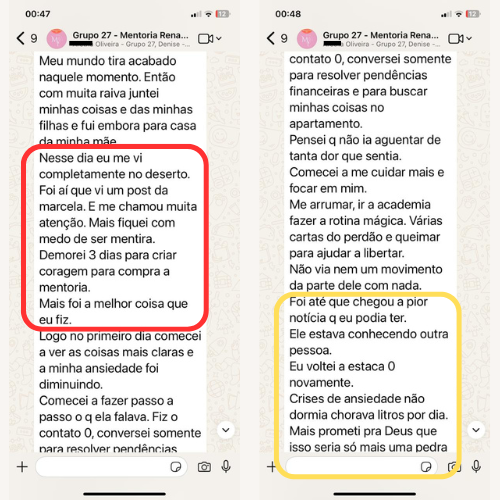 O Renascer é uma mentoria em grupo criada por mim, depois de muitos anos de estudo comprovado pela neurociência e testado na prática em histórias reais, onde mais de 13 mil mulheres salvaram suas histórias, mesmo depois de ouvir - Eu não te amo mais, segue sua vida e já estar até com outra. Você terá um acompanhamento diretamente comigo, onde eu avalio sua história e te dou orientações personalizadas para seu caso, para imediatamente parar de errar e com estratégias que não servem para você, afastando ainda mais ele.